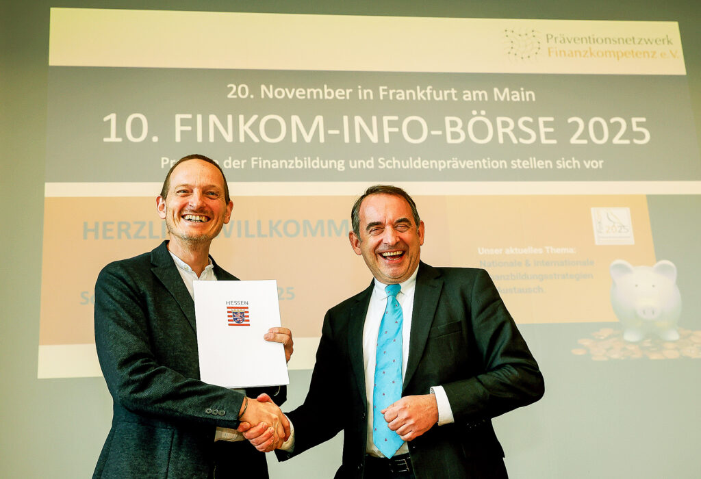 Vor dem Hintergrund wachsender Anforderungen an Finanzbildung und Schuldenprävention stand die FinKom 2025 am 20. November in Frankfurt am Main im Zeichen des nationalen und internationalen fachlichen Austauschs. Seit 2006 – und inzwischen zum 10. Mal – brachte die FinKom vielfältige Akteur:innen aus Bildung, Beratung, Wissenschaft, Politik und Praxis zusammen und bot erneut eine Plattform, um Projekte sichtbar zu machen und Diskussionen anzustoßen.