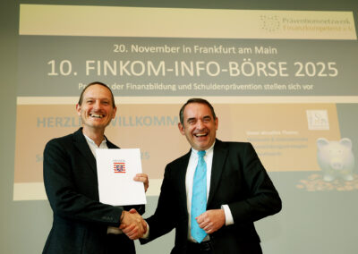Bereits seit 2006 – inzwischen zum 10. Mal – findet mit der FinKom die einzige Fachmesse in Deutschland statt, welche Projekte aus der Finanzbildung und Schuldenprävention präsentiert. Ziel ist es, den bundesweiten und internationalen Austausch in der Bildungs- und Präventionsarbeit zu fördern und innovative Projekte sichtbar zu machen.