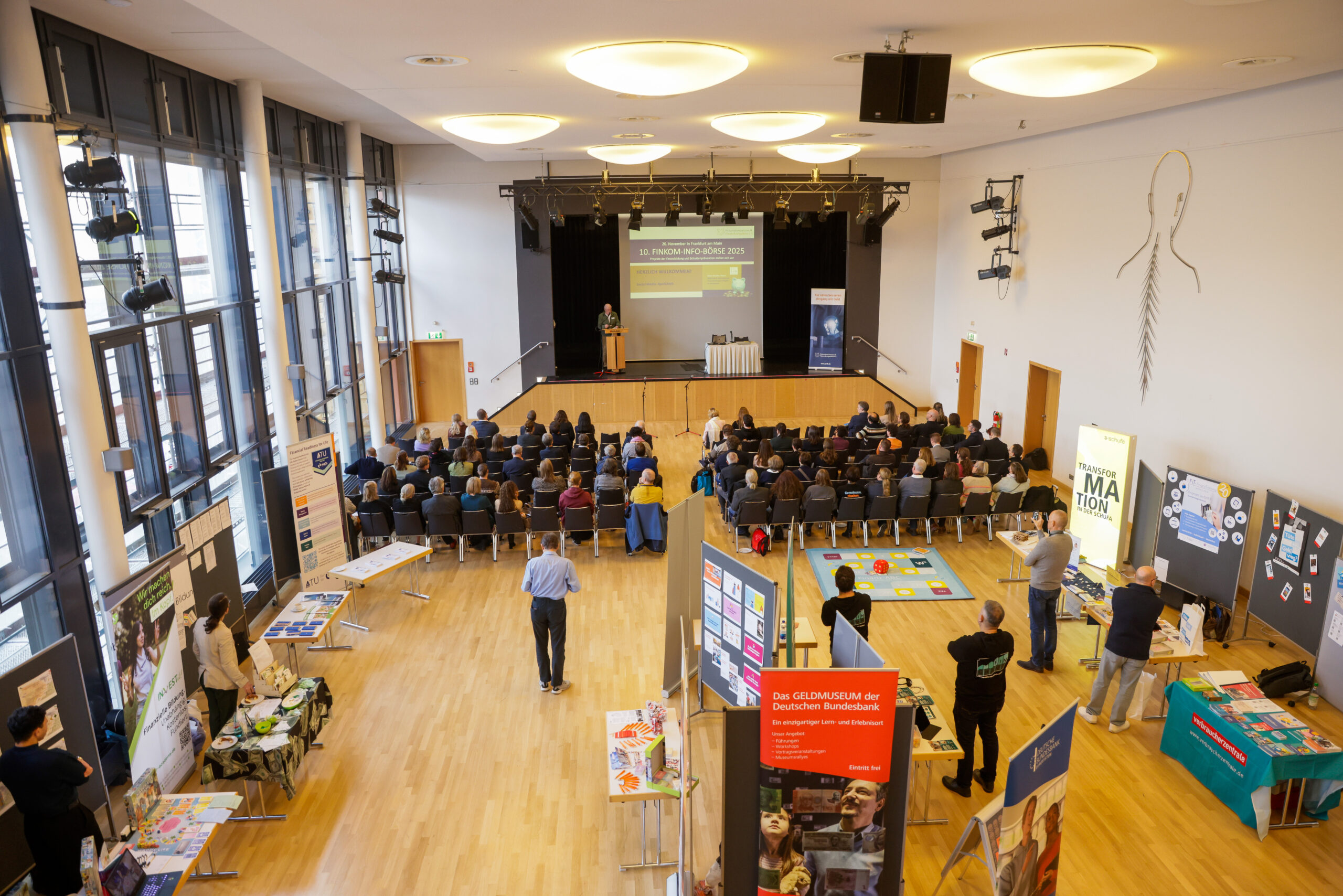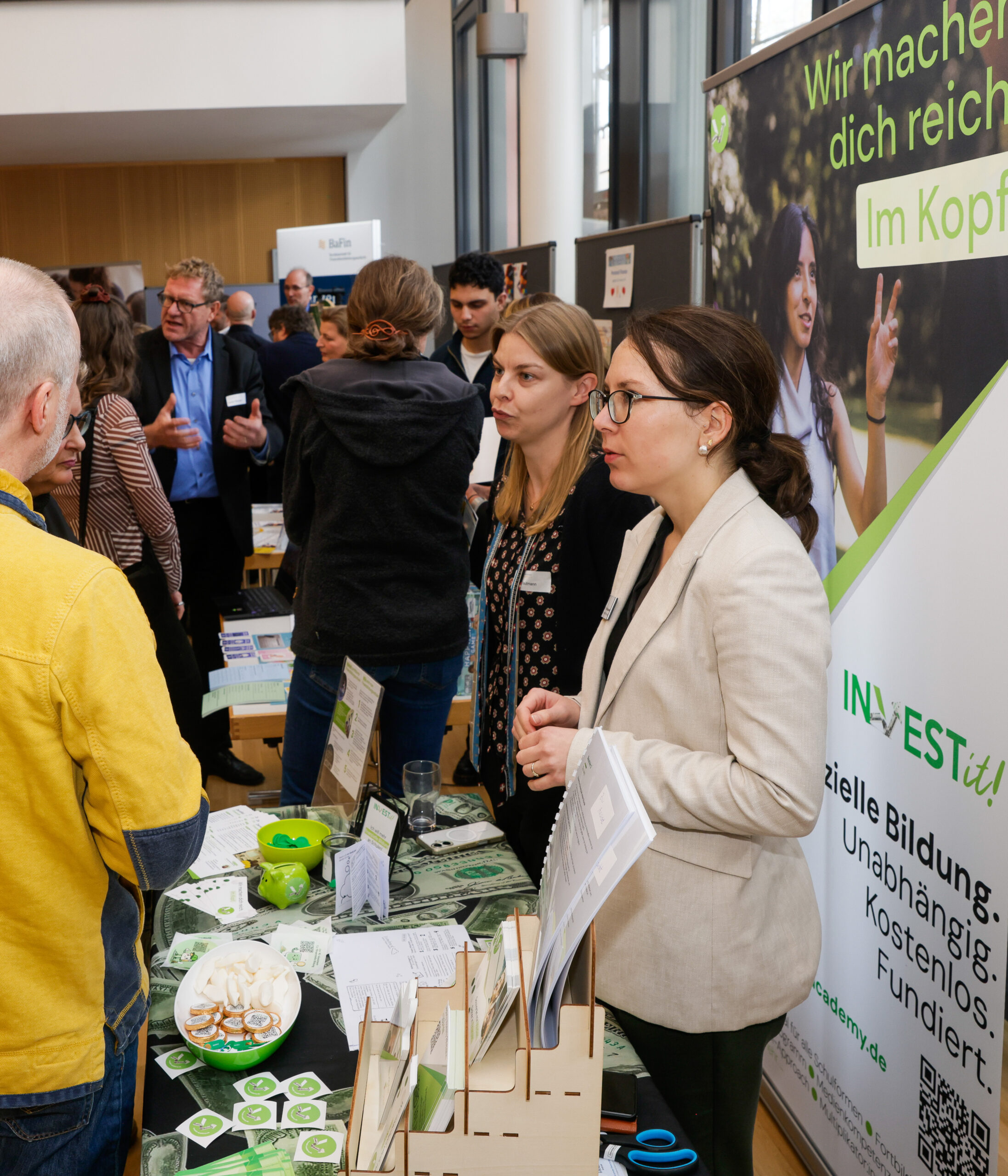 Möchten Sie als Fachbesucher:in an der FinKom teilnehmen, zum Beispiel um sich fachlich auszutauschen, Projekte aus dem Bereich Finanzbildung kennenzulernen oder um Ihr Netzwerk zu erweitern, dann freuen wir uns auf Ihre Anmeldung bis spätestens zum 30. Oktober 2025.